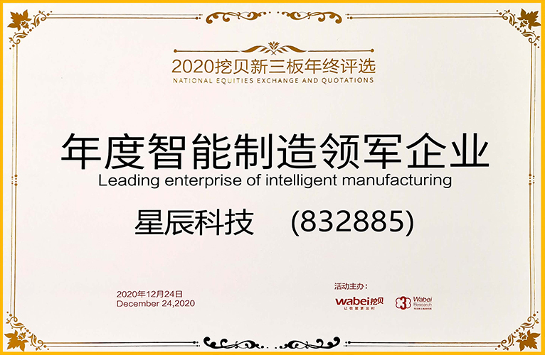 公司榮獲2020挖貝新三板年終評(píng)選“年度智能制造領(lǐng)軍企業(yè)”稱號(hào)