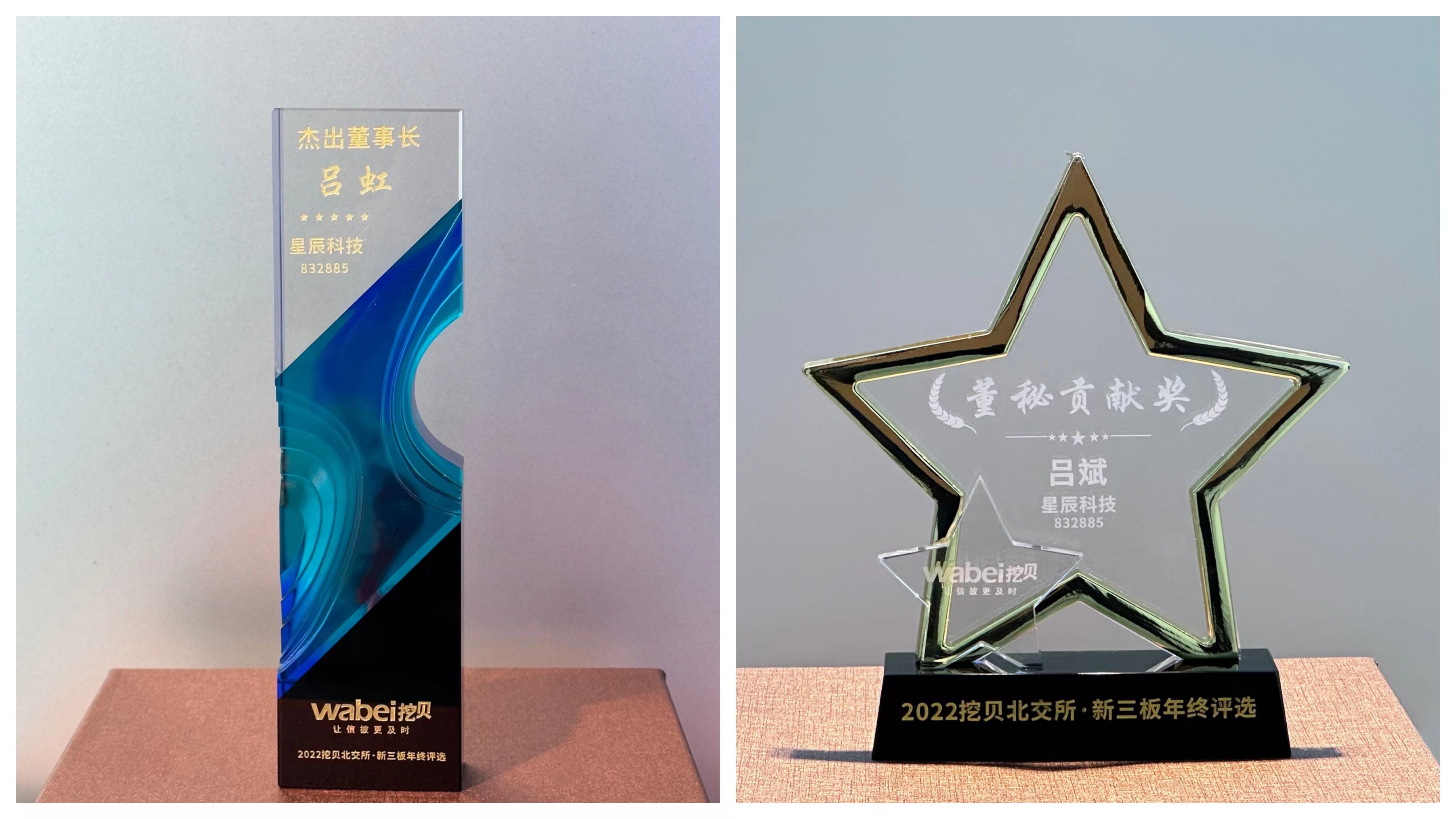 近日,由挖貝網(wǎng)、挖貝新三板研究院聯(lián)合舉辦的“第七屆挖貝北交所·新三板領(lǐng)軍企業(yè)年會”在北京圓滿舉行。星辰科技載譽(yù)而歸,榮膺“2022年度智能制造領(lǐng)軍企業(yè)”大獎,董事長呂虹榮獲“2022挖貝北交所杰出董事長”獎項(xiàng),董秘呂斌獲得“2022挖貝北交所董秘貢獻(xiàn)獎”。