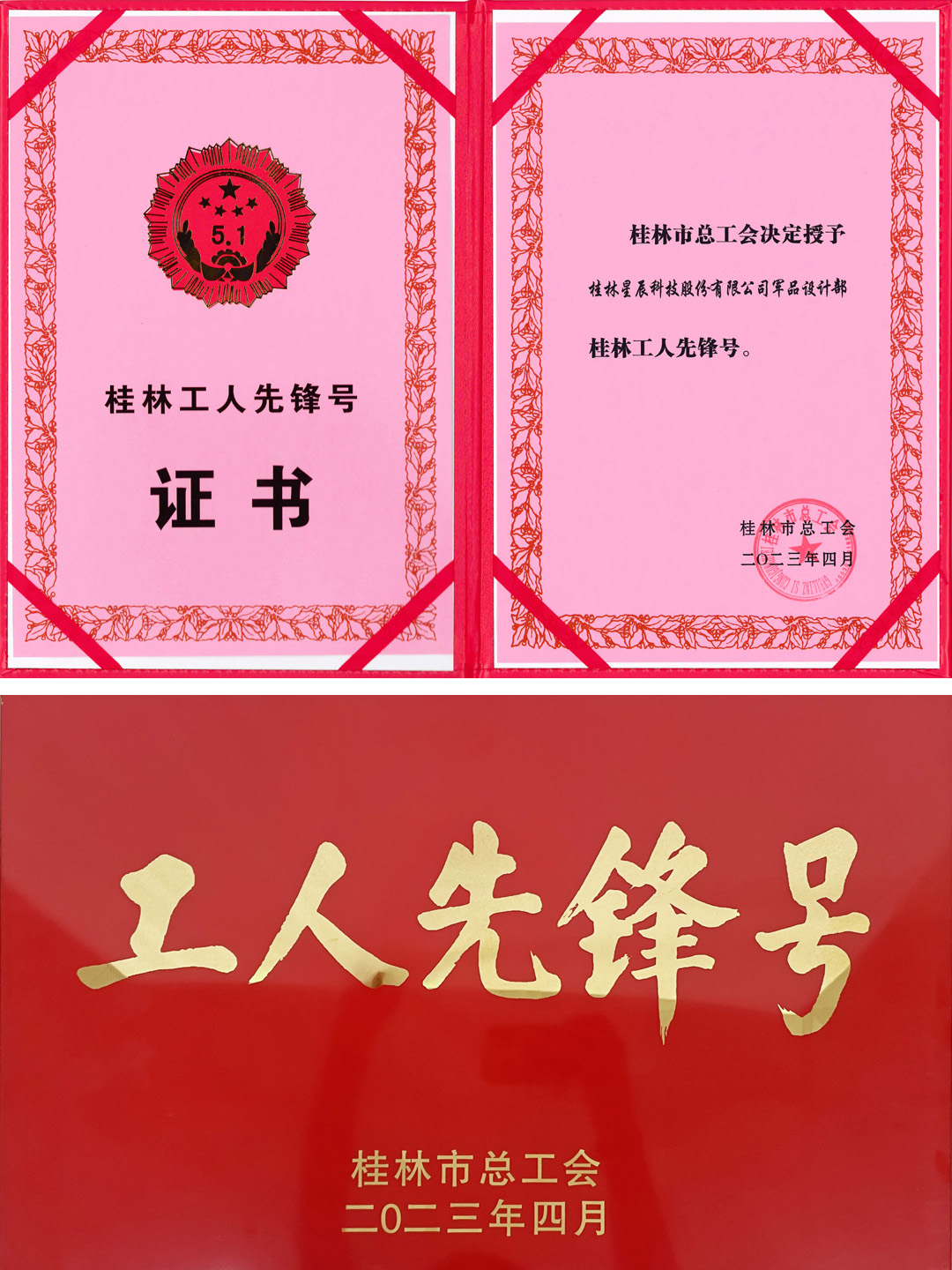 近日,廣西壯族自治區(qū)總工會(huì)對2023年廣西五一勞動(dòng)獎(jiǎng)和廣西工人先鋒號進(jìn)行表彰,桂林星辰科技股份有限公司董事會(huì)辦公室榜上有名,榮獲廣西工人先鋒號稱號。與此同時(shí),公司軍品設(shè)計(jì)部也獲得由桂林市總工會(huì)頒發(fā)的桂林市工人先鋒號榮譽(yù)稱號。獲得此項(xiàng)殊榮,既是自治區(qū)總工會(huì)、桂林市總工會(huì)對星辰科技的認(rèn)可,也是對星辰員工愛崗敬業(yè)、拼搏奉獻(xiàn)、竭誠服務(wù)的激勵(lì)。