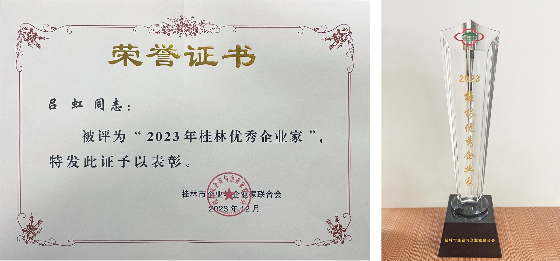 2023年12月21日,桂林市企業(yè)與企業(yè)家聯(lián)合會召開了2023年會員代表大會暨桂林市企業(yè)家活動日。會上,公布了2023桂林市優(yōu)秀企業(yè)家名單,星辰科技董事長呂虹榮獲“2023年桂林優(yōu)秀企業(yè)家”稱號。